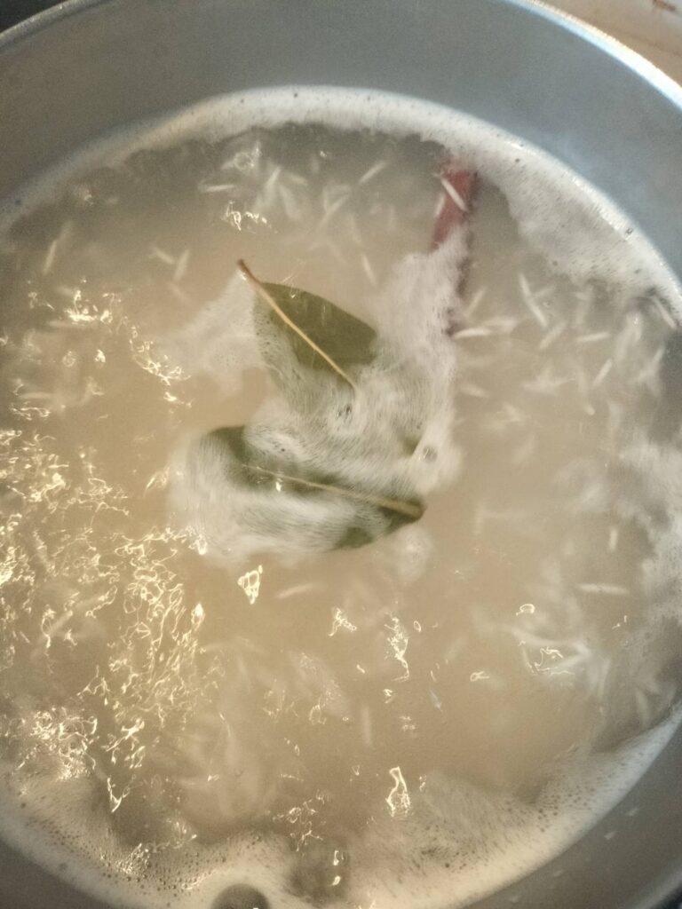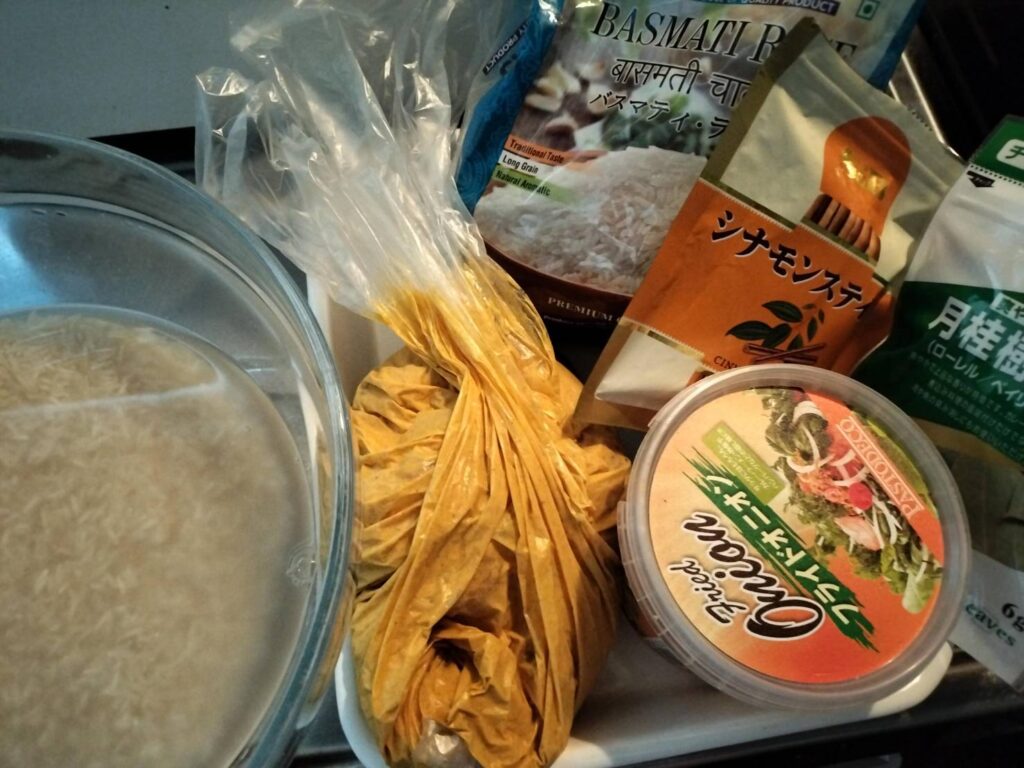 沖縄市のインド食材店で買っておいたバスマティライスを取り出し、いざビリヤニづくり開始!