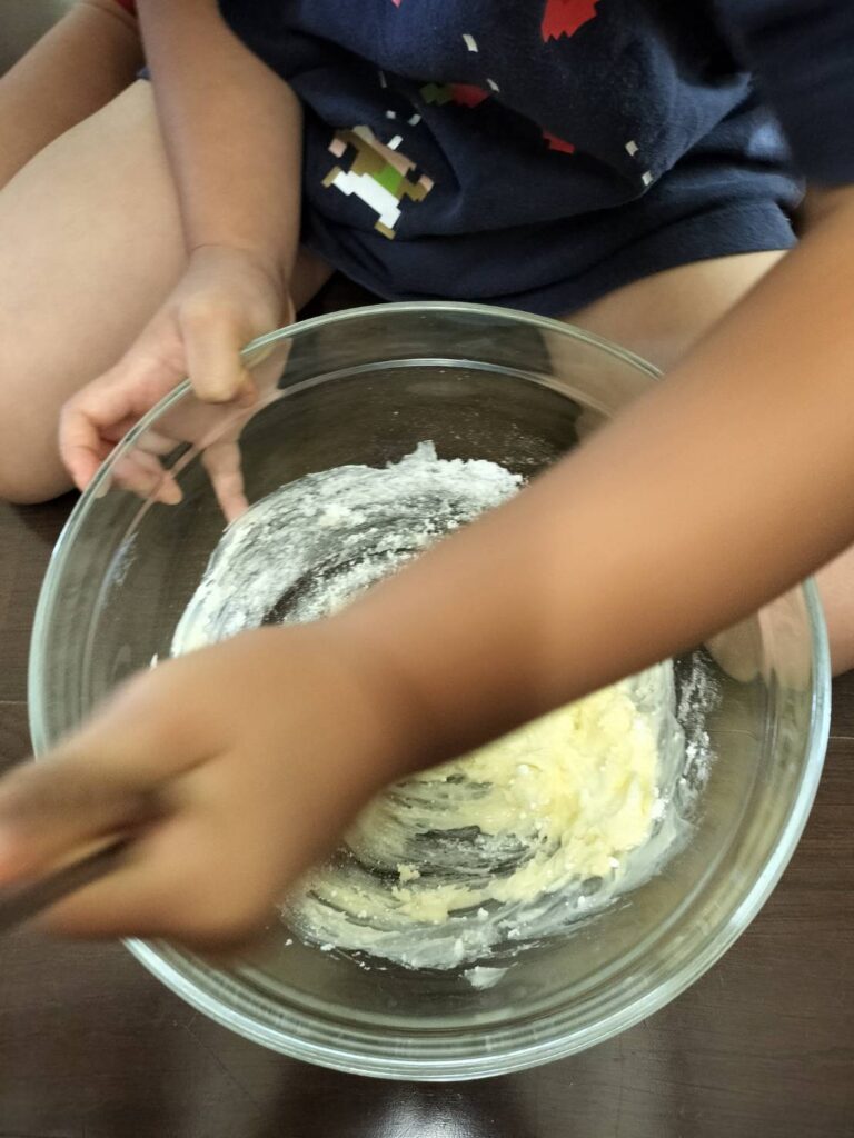 ある日、暇だったので次男のムムと一緒にスノーキューブクッキーを手作りしました🍪