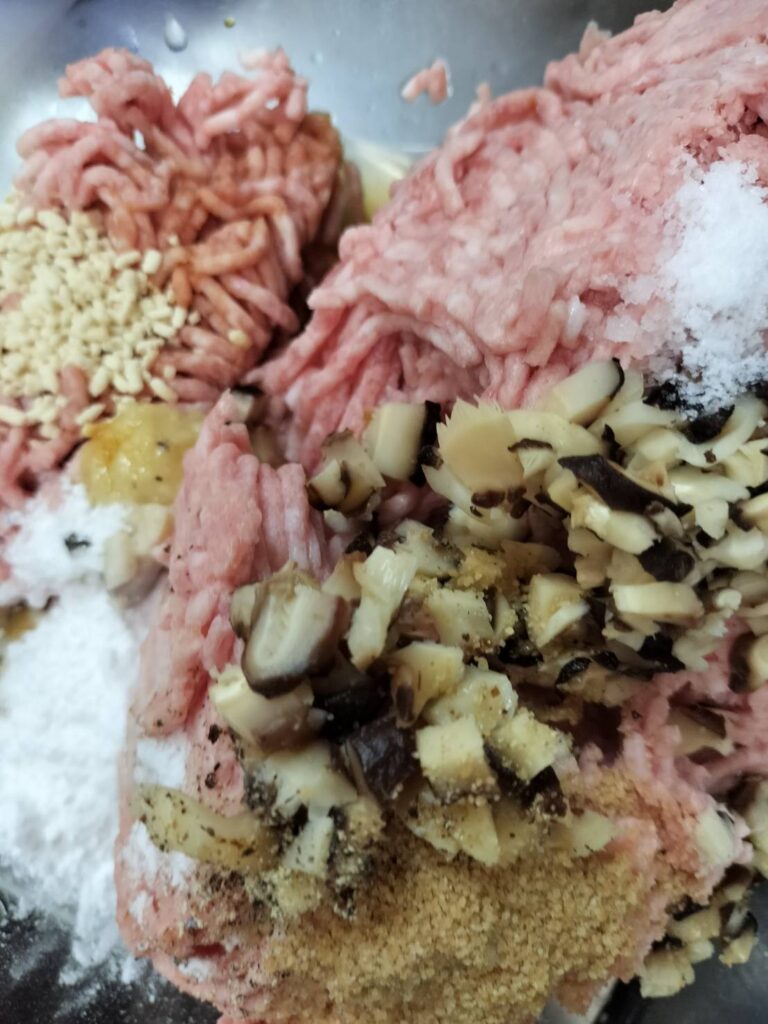 干し椎茸を戻して、材料をみじん切りにして、豚ひき肉とこねて蒸すだけ。