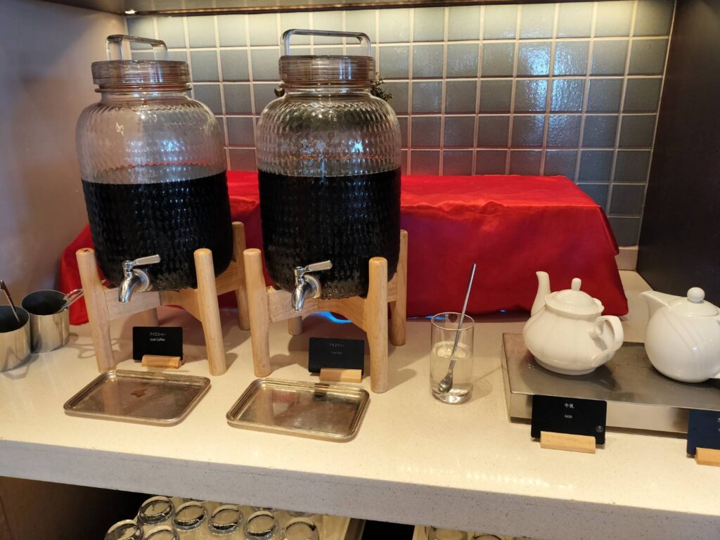 各種温かいコーヒーはコーヒーマシーン。紅茶、日本茶、ジャスミンティーはティーバッグでした。