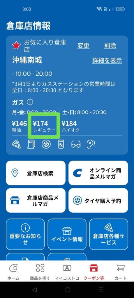 ※最近はコストコのガソリン価格をチェックするのも日課になっています。