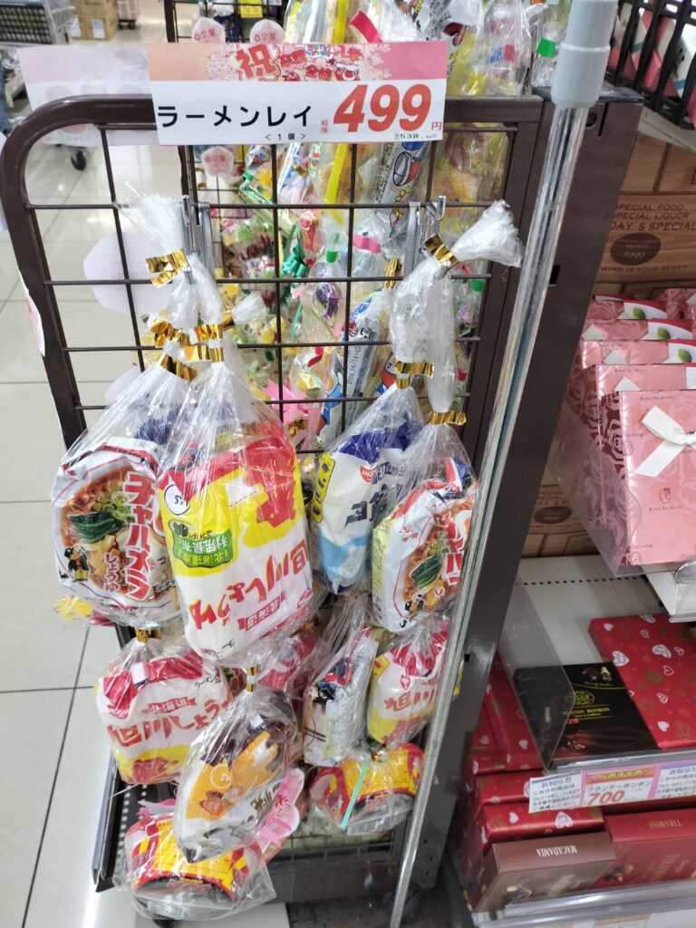 そして今の時期、スーパーに行くとレイ用のお菓子セットがずらりと並びます。定番の駄菓子タイプから、なんと袋ラーメンや魚肉ソーセージまで(笑)。バリエーションの豊かさに思わず笑ってしまいます。