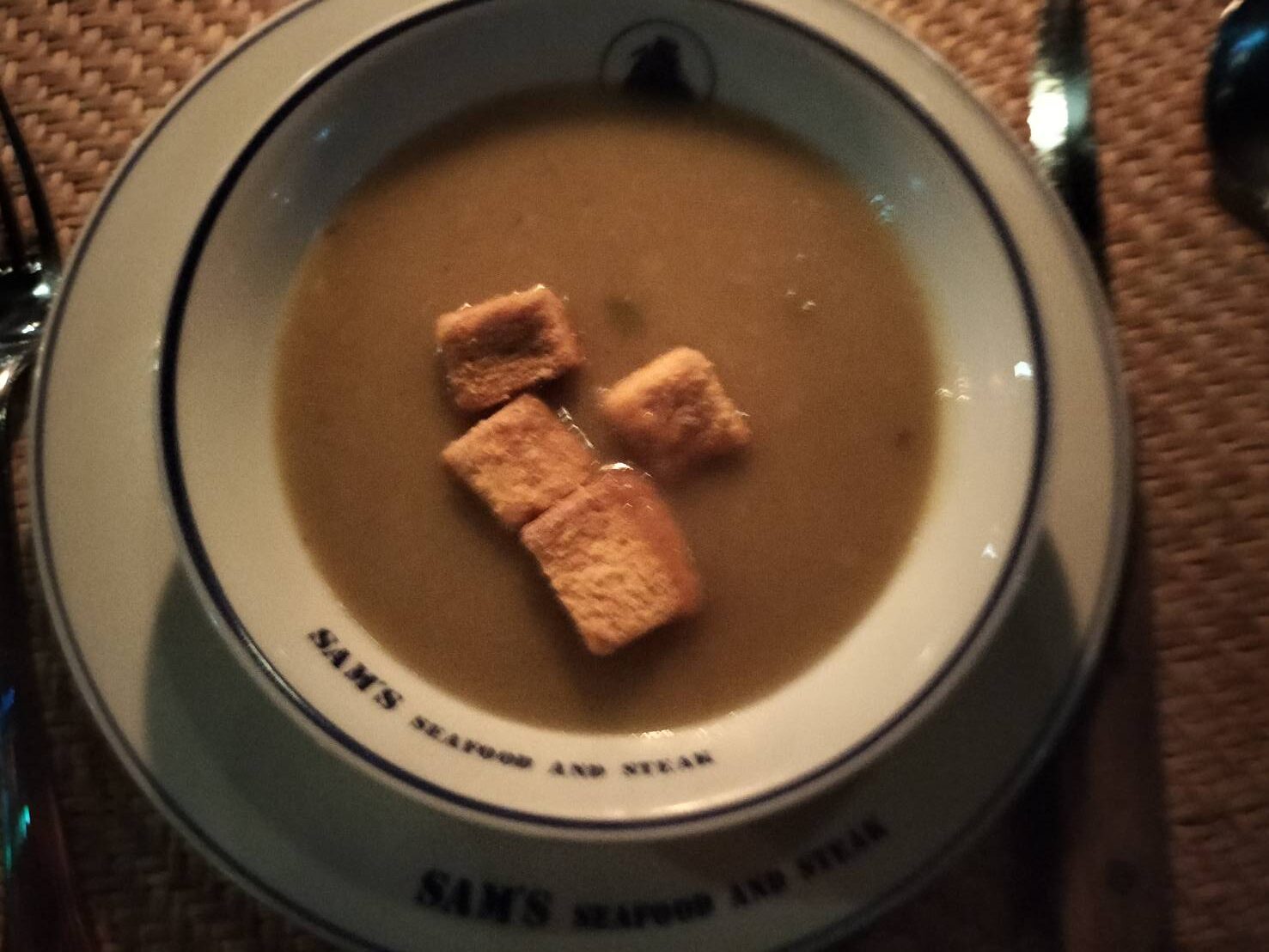 ガーリックのクルトンが入っていて、スパイシーなスープにパンチをプラス。