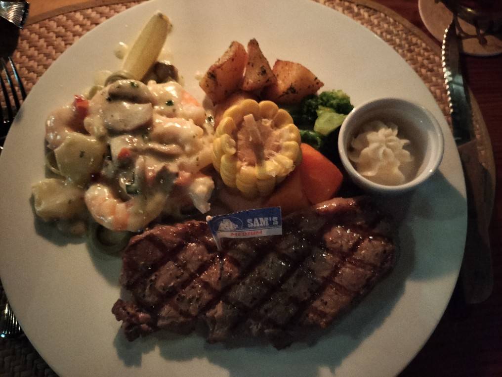 サムズバイザシー泡瀬店レポ|子連れOK・ステーキもシーフードも大満足のディナー