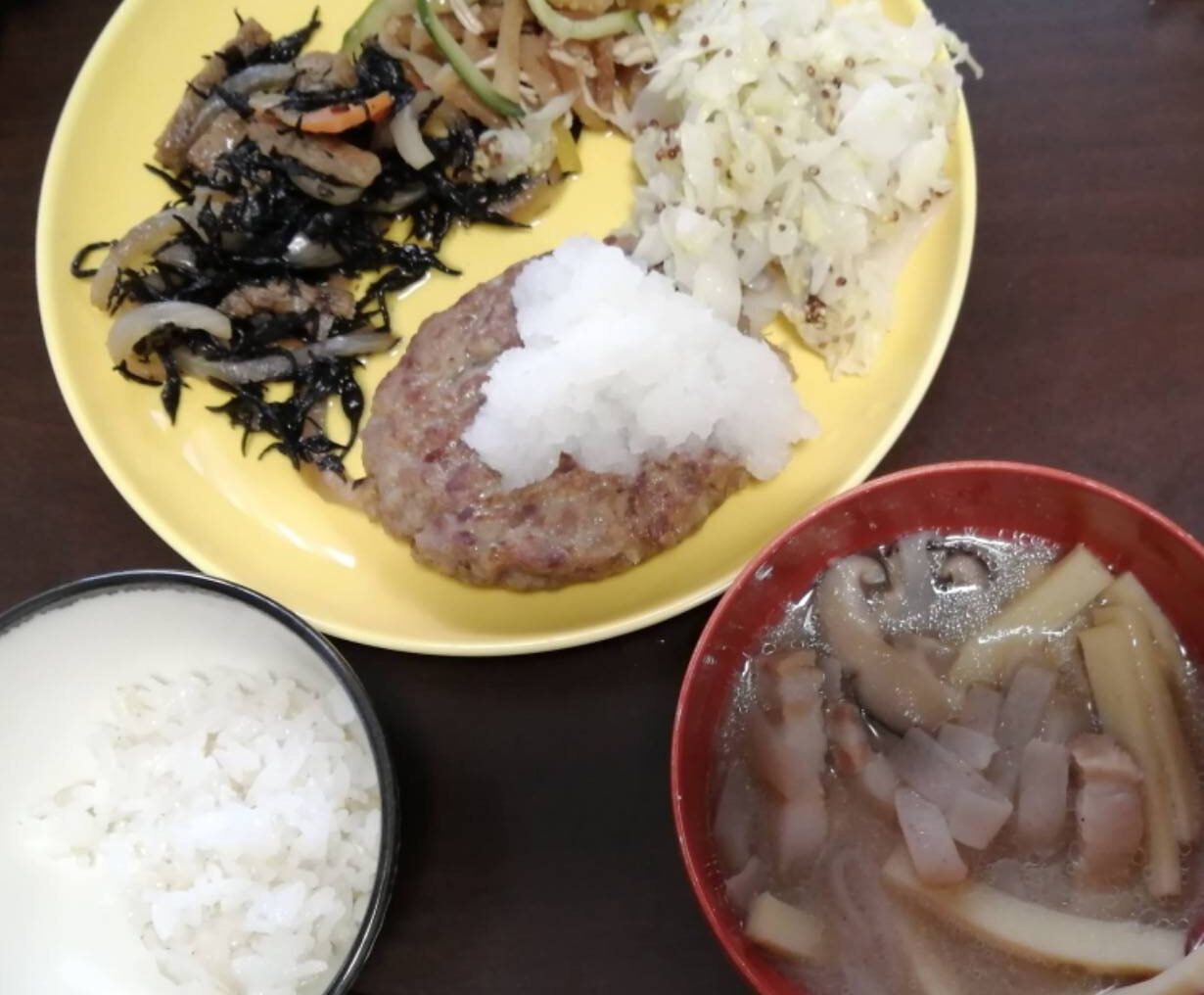 ↓この時はイナムルチ・ハンバーグ・ひじきの煮物を。